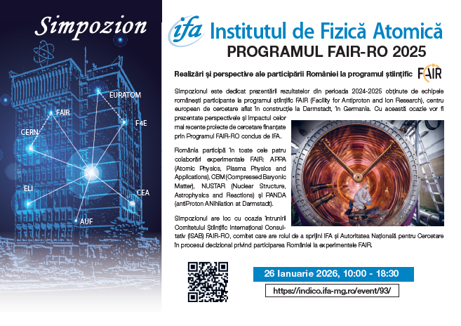 Simpozionul este dedicat prezentării rezultatelor din perioada 2024-2025 obținute de echipele românești participante la programul științific FAIR (Facility for Antiproton and Ion Research), centru european de cercetare aflat în construcție la Darmstadt, în Germania.