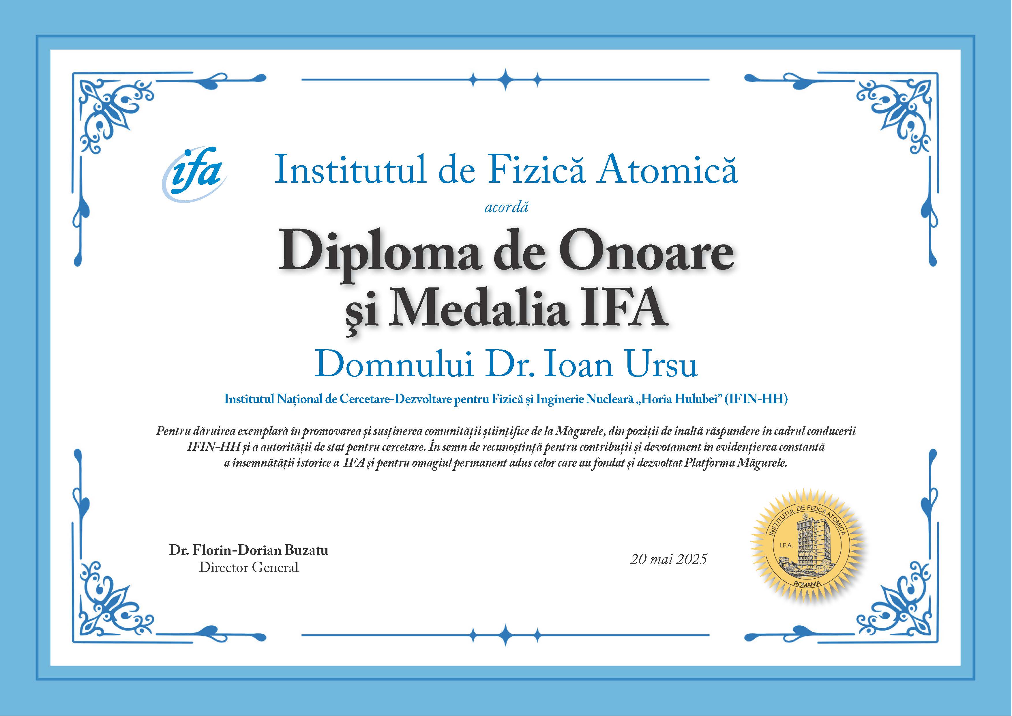 For the entire scientific and managerial activity at "Alexandru Ioan Cuza" University in Iasi and within the Ministry of Education and Research, for the contribution to the development of Plasma Physics in Romania and for the increase of the visibility and the role of Romanian research at international level As a token of high appreciation of the entire scientific and managerial activity as rector of "Alexandru Ioan Cuza" University in Iasi, as State Secretary in the Ministry of Education and Research, as president of ANELIS PLUS, of his contribution to developing the field of plasma physics, to strengthening Romania's participation in EURATOM program. |
